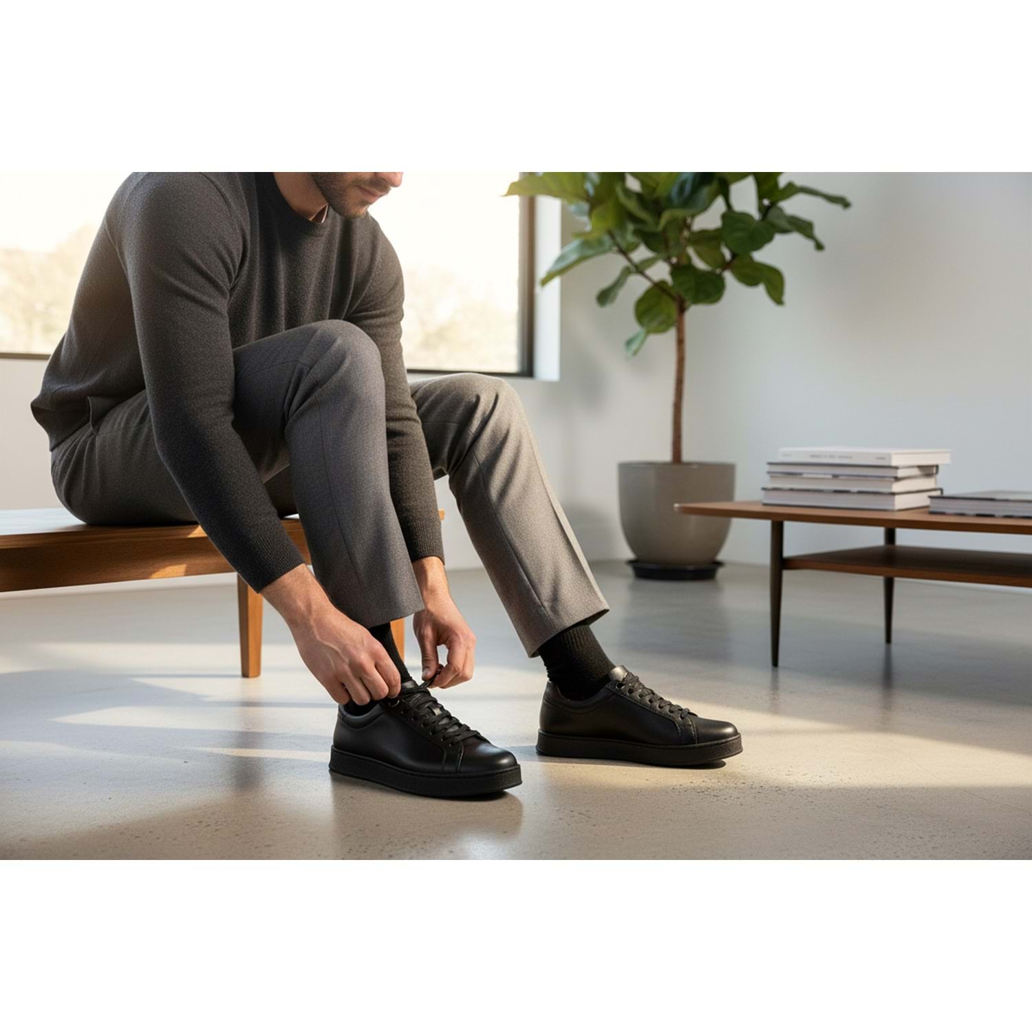 Stilinden ödün vermeyen erkekler için tasarlanmış siyah deri casual ayakkabı, her adımda zarafet ve konforu bir arada sunar. Günlük şehir yaşamından iş-dışı buluşmalara, smart-casual kombinlerden modern street style’a kadar tüm stillere kusursuz uyum sağlar.