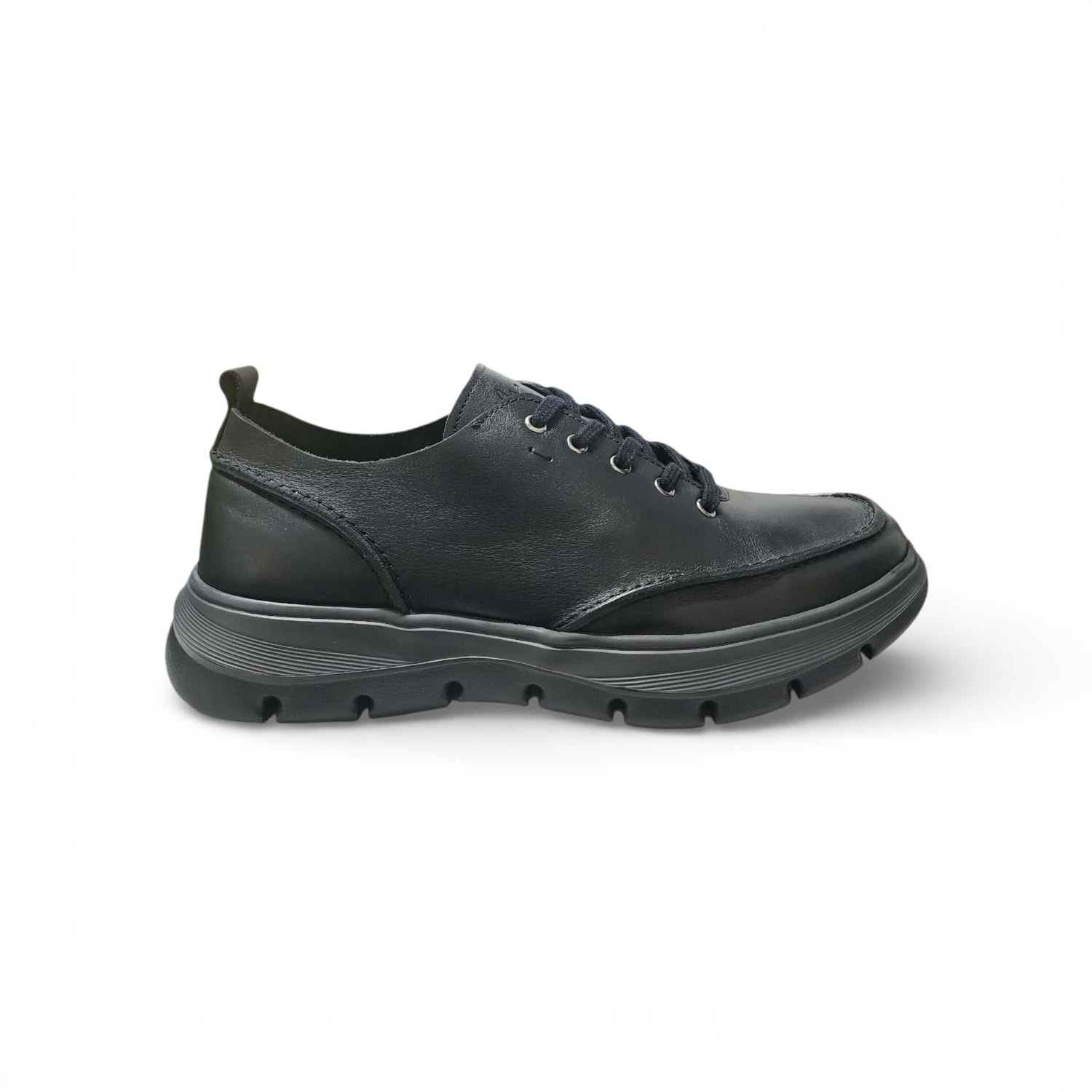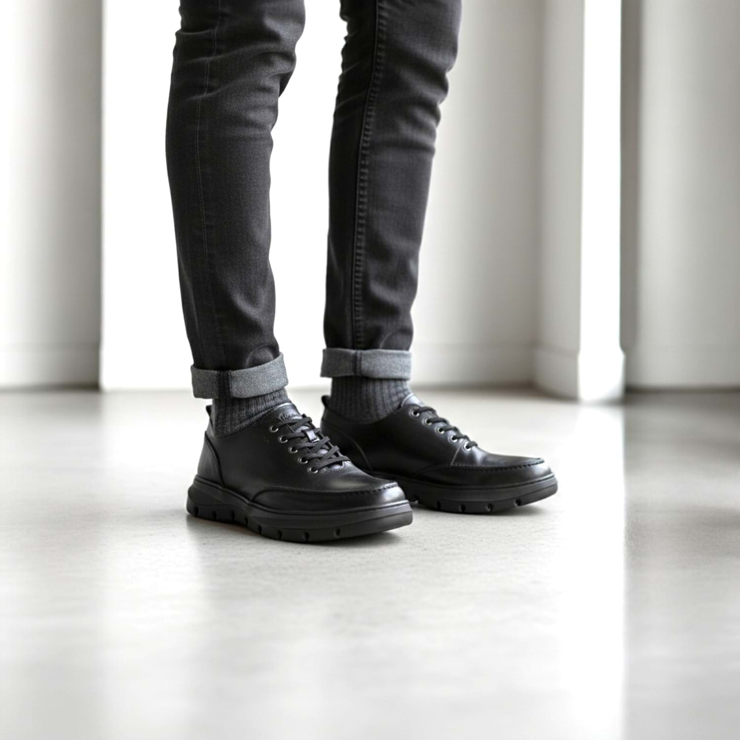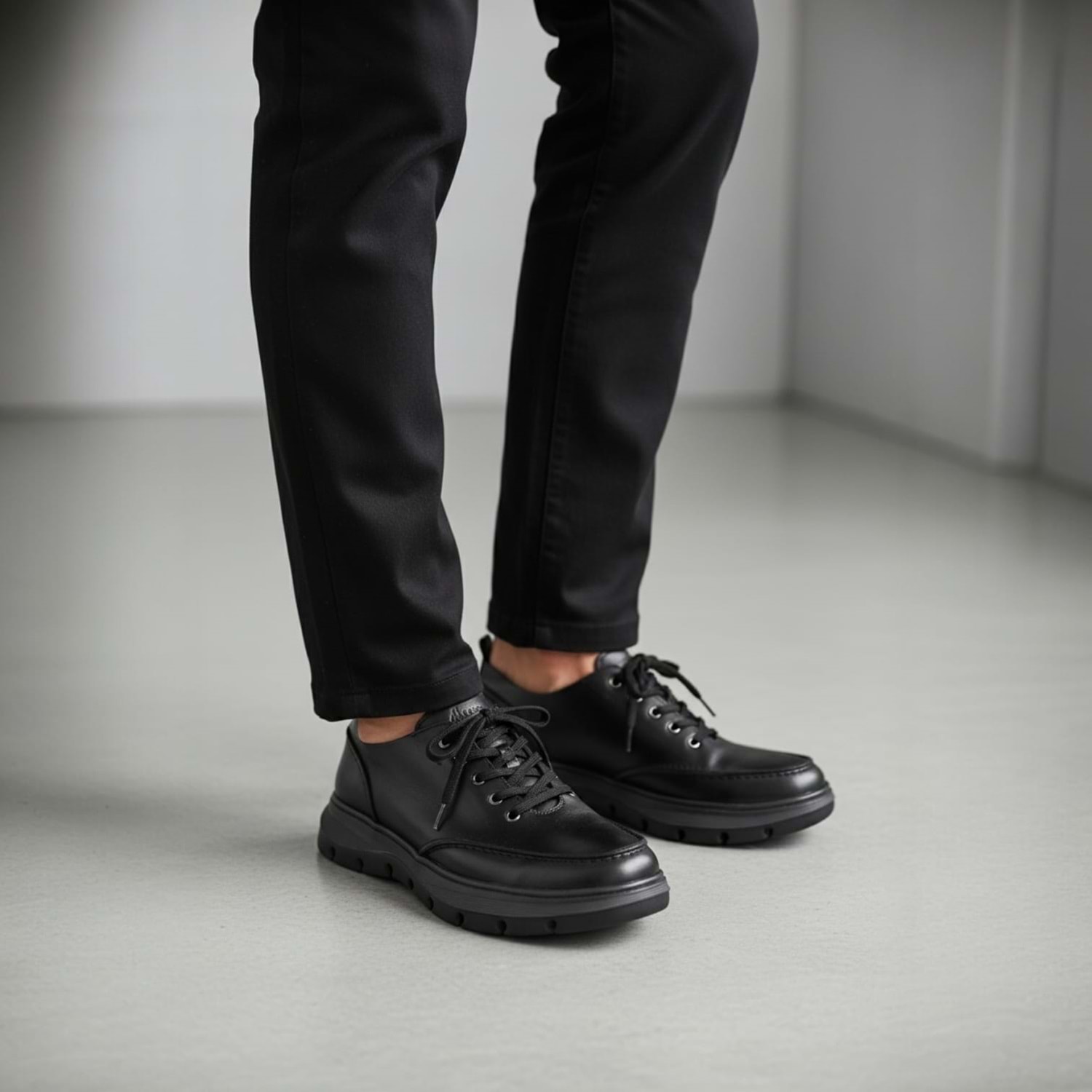 Üst yüzeyde kullanılan hakiki deri, nefes alabilirlik ve dayanıklılığı bir araya getirir. Siyah deri hem minimalist hem güçlü bir görünüm sunar, hem de günlük yaşamın temposuna uyum sağlar. Deri yüzey, uzun süreli kullanımlarda dahi formunu korur ve doğallığını hissettirir.